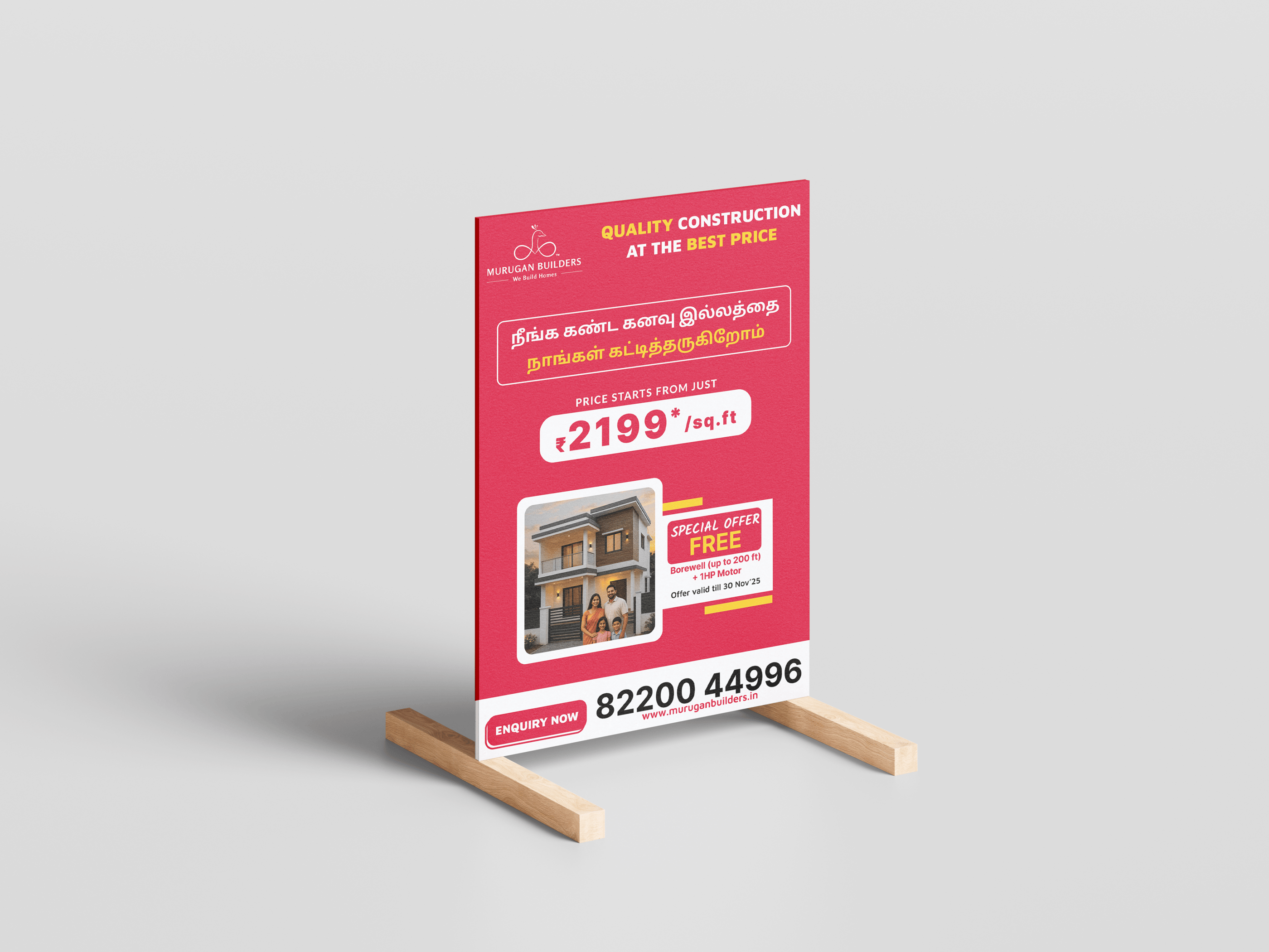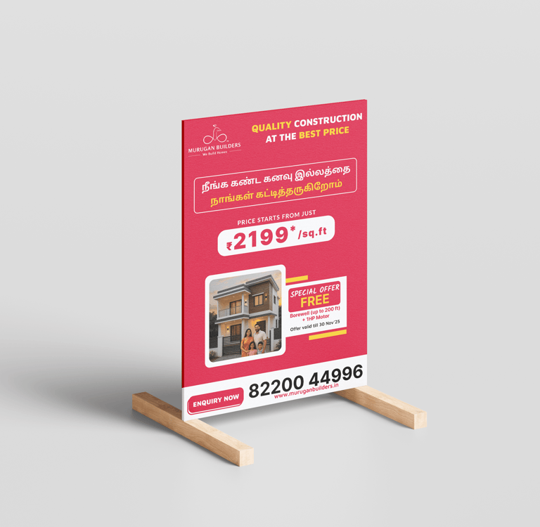 Murugan Builders aims to maintain a professional, confident, and easy-to-understand brand identity while highlighting their unique strengths across social media and print materials.