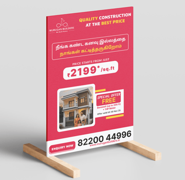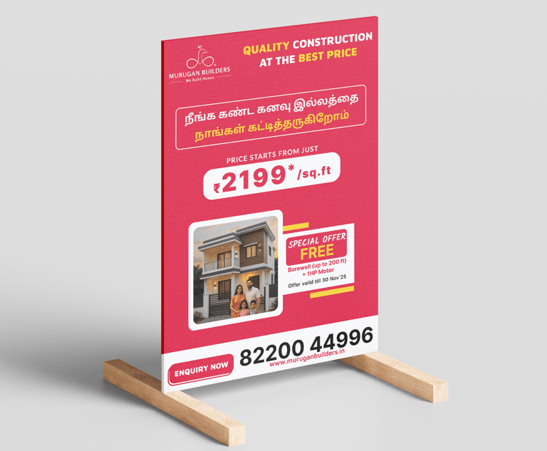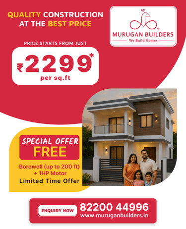 Murugan Builders aims to maintain a professional, confident, and easy-to-understand brand identity while highlighting their unique strengths across social media and print materials.